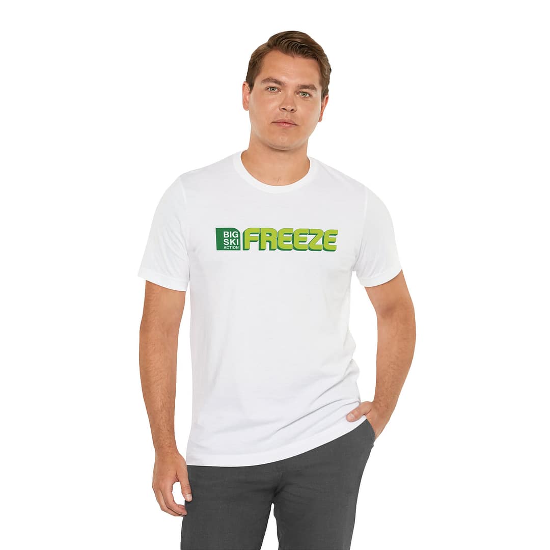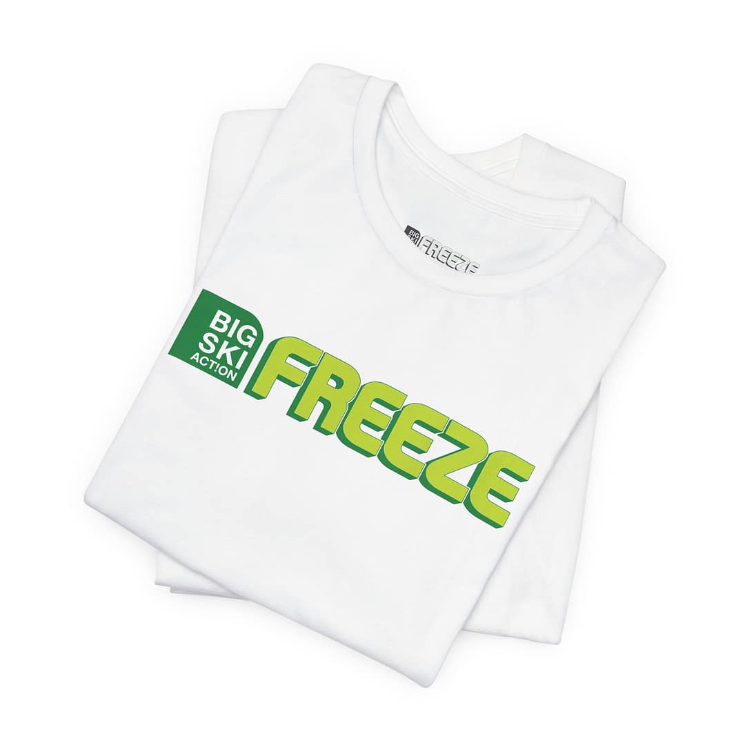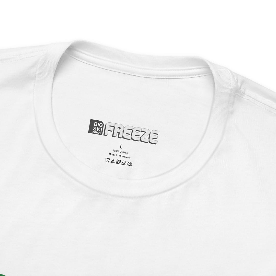 Relive the golden era of freeskiing with this limited-edition reprint: the iconic 2002 Big Ski Action Logo straight from the original Freeze Magazine archives—printed on a premium white tee.