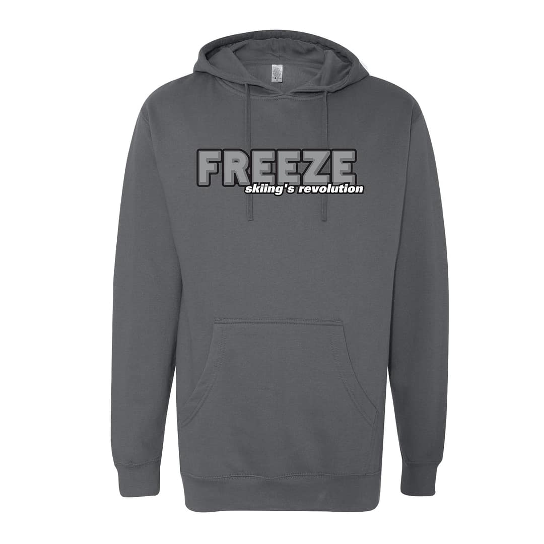 The classic 2000 FRZ Logo printed on high-quality midweight hooded, 80/20 Cotton/Poly blend CHARCOAL fleece.