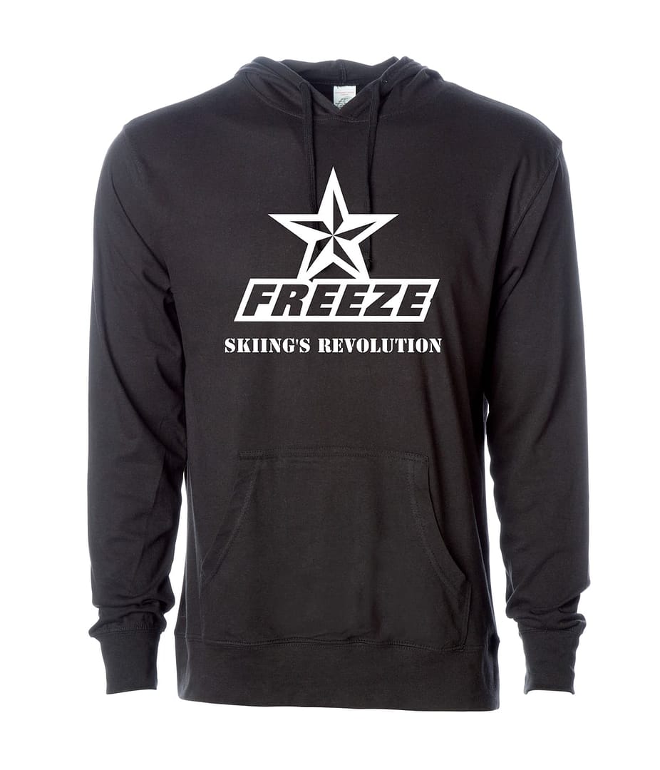 Relive Skiing’s Revolution with the classic FREEZE Rebel Star logo printed on a Men’s Lightweight Jersey Hooded Pullover made from premium ring-spun cotton, finished with sewn eyelets, flat drawcord, unlined hood, and 1×1 ribbing at cuffs and waistband in a slim men’s fit.